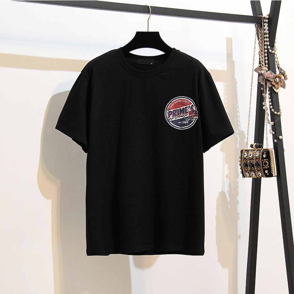 Plus Size Women's Fat Summer Dress New Fat Hot Diamond Printing Oversize Short-Sleeved T-Shirt Women