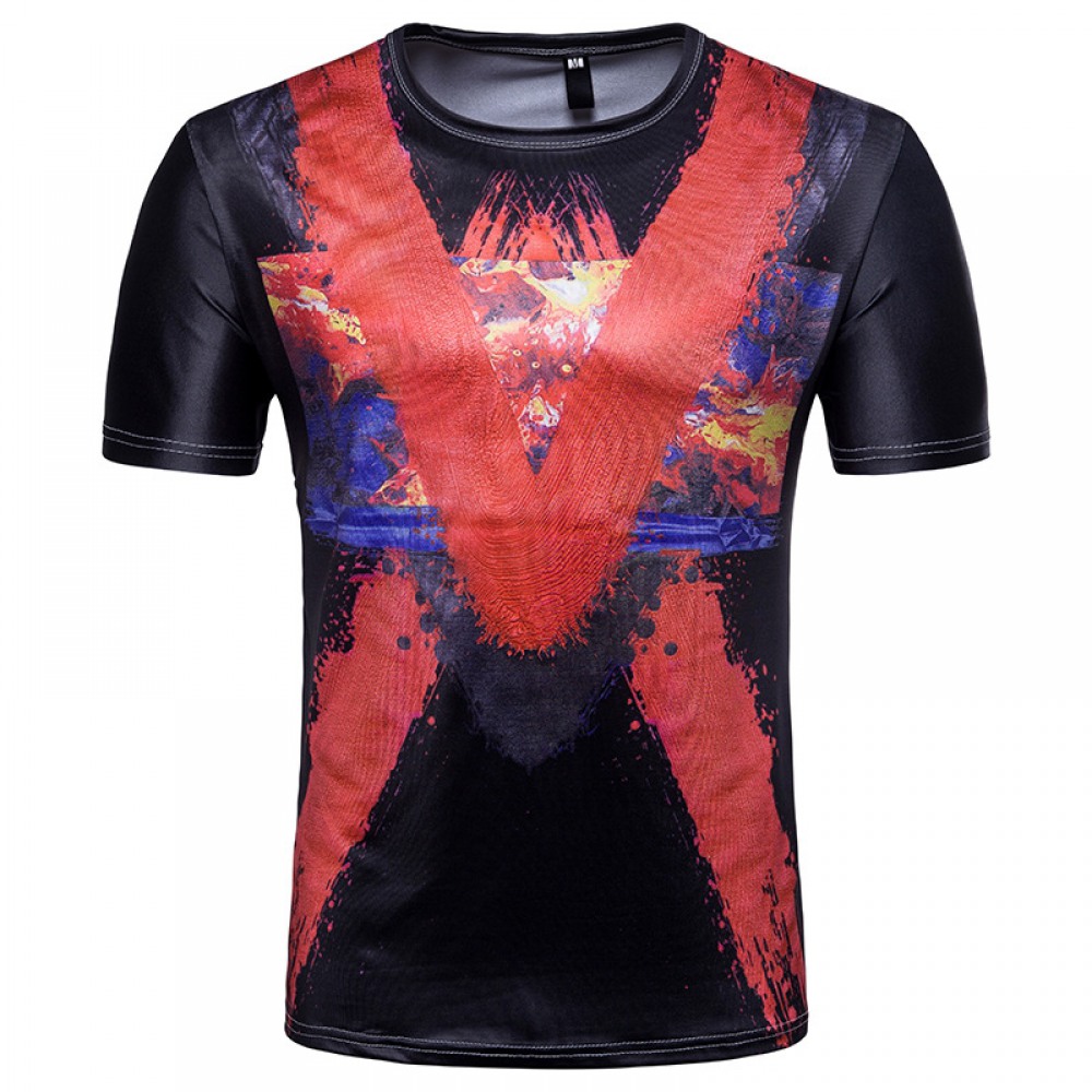 Men's 3D Short-Sleeved T-Shirt Splash Ink Printing T-Shirt Graffiti Printing T-Shirt