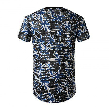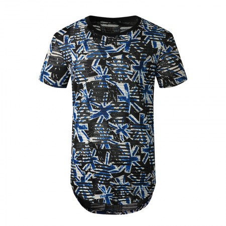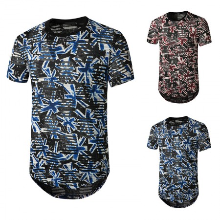 Men's High Street Style Double Zipper Long Round Neck T-Shirt Multicolor Large Size Short-Sleeved T-Shirt