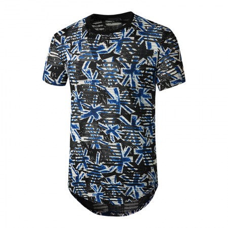 Fashion Men's Casual Personality Splash Ink Letter Printing Long-Sleeved T-Shirt