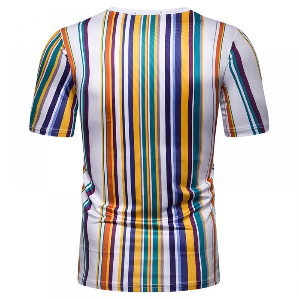 New Summer Men's Short-Sleeved T-Shirt Mens Contrast Striped Slim Casual T-Shirt