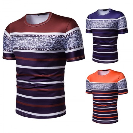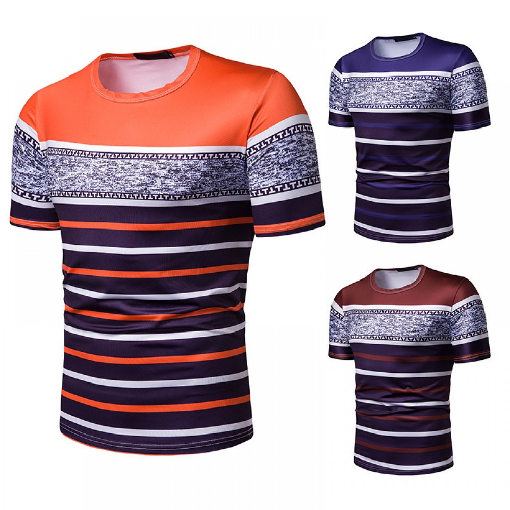 New Summer Men's Short-Sleeved T-Shirt Men's Contrast Striped Slim Casual T-Shirt