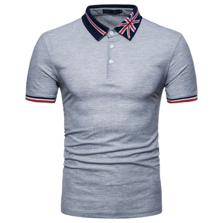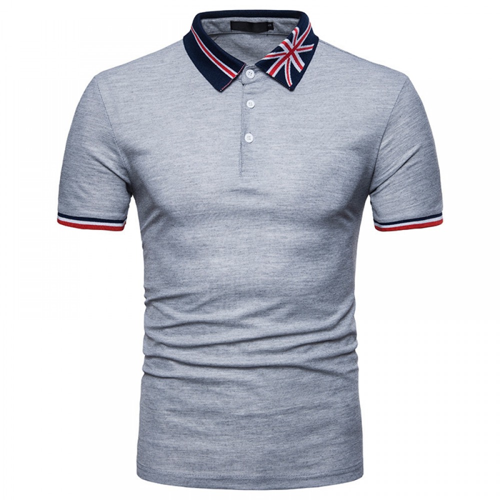 Casual Men's T-Shirt Short Sleeve Lapel Mens Polo Shirt British Style