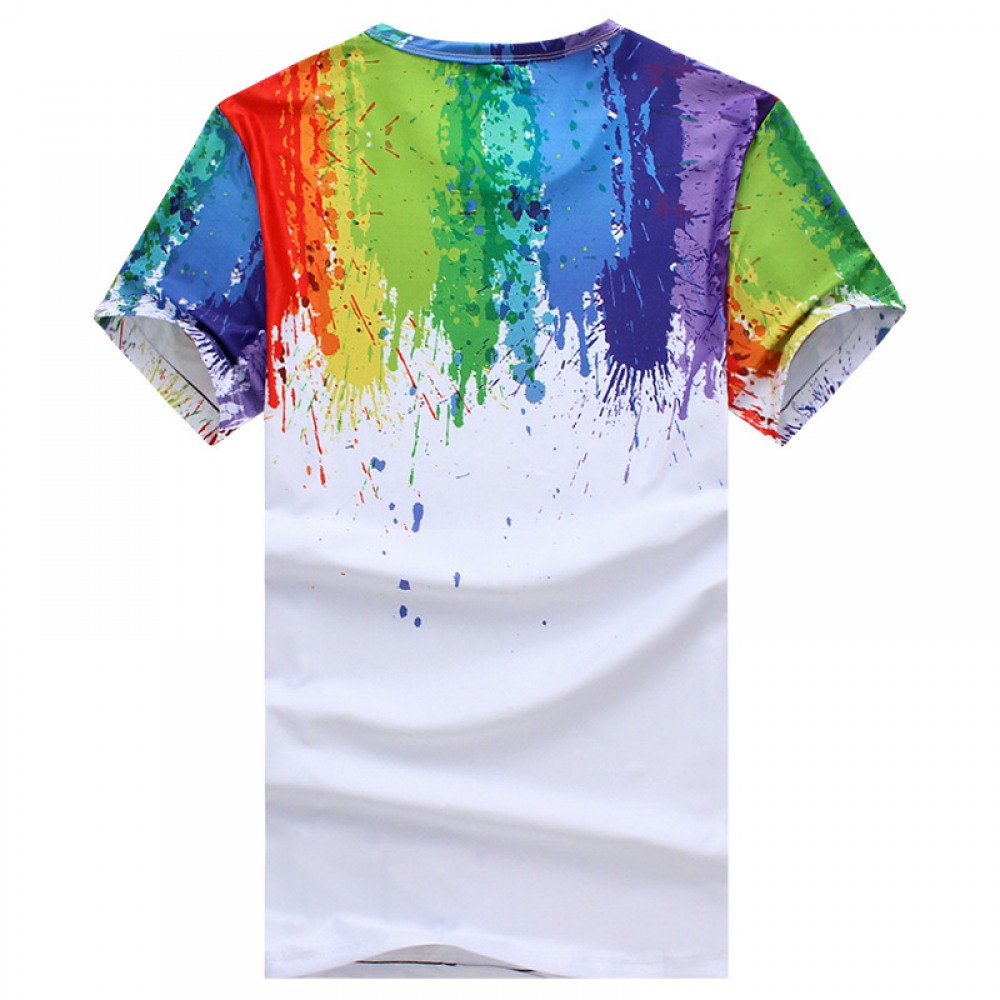 Summer New Style Splash Paint Splash Ink 3D Printing Men's Rainbow Short Sleeve T-Shirt